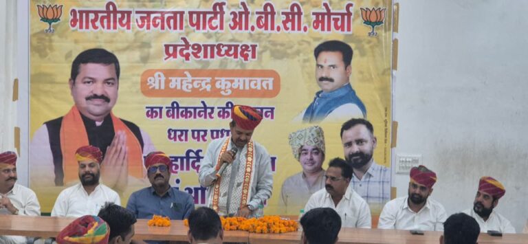 बीकानेर, निडर इंडिया न्यूज। भारतीय जनता पार्टी ओबीसी मोर्चा के प्रदेश अध्यक्ष महेंद्र कुमावत का पहली बार बीकानेर आगमन पर रविवार को बंगला