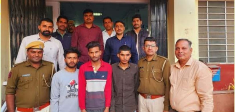 पुलिस की ओर से दस्तायाब किए गए आरोपी आकाश वाल्मिकी पुत्र नौरताराम उम्र 22 वर्ष निवासी पीलीबंगा हाल राजीव नगर बीकानेर, भोजराज नायक पुत्र हरीराम नायक उम्र 18 वर्ष निवासी राजीव नगर और मदन नायक पुत्र विजूराम नायक उम्र 19 निवासी पीलीबंगा हाल राजीव नगर बीकानेर।