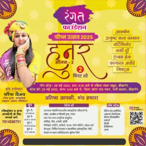 रंगत फाउंडेशन की ओर से होने वाले दो दिवसीय हुनर सीजन-2 कार्यक्रम की तैयारियां जोर-शोर से चल रही है। प्रतिभावान हुनरबाज उत्साह के साथ अपना रजिस्ट्रेशन करवा रहे हैं।