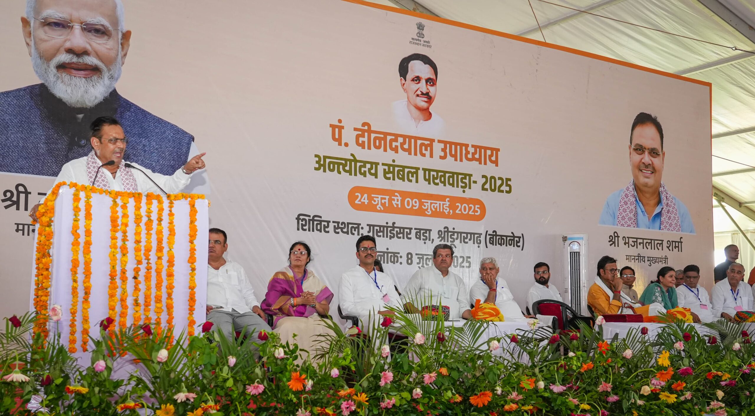 शर्मा मंगलवार को बीकानेर में श्रीडूंगरगढ़ के गुसांईसर बड़ा गांव में पंडित दीनदयाल उपाध्याय अन्त्योदय संबल शिविर के अंतर्गत आयोजित समारोह को संबोधित कर रहे थे। उन्होंने कहा कि यशस्वी प्रधानमंत्री नरेन्द्र मोदी ने कहा है कि अंतिम पायदान पर खड़े व्यक्ति के उत्थान से ही देश-प्रदेश का समग्र विकास संभव है। उनकी इस भावना के अनुरूप राज्य सरकार ने वंचितों को वरीयता देते हुए अपनी नीति एवं कार्यक्रमों की रूपरेखा बनाई हैं। पंडित दीनदयाल उपाध्याय अन्त्योदय संबल पखवाड़ा इसी रूपरेखा का एक महत्वपूर्ण हिस्सा है।