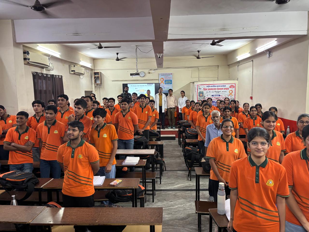 विश्व आत्महत्या रोकथाम सप्ताह के तीसरे दिन सरदार पटेल मेडिकल कॉलेज, बीकानेर के प्रधानाचार्य व नियंत्रक डॉ. गुंजन सोनी के निर्देशानुसार मानसिक रोग एवं नशामुक्ति विभाग द्वारा सिंथेसिस कोचिंग संस्थान के छात्रों के लिए एक जागरूकता सेमिनार आयोजित किया गया।