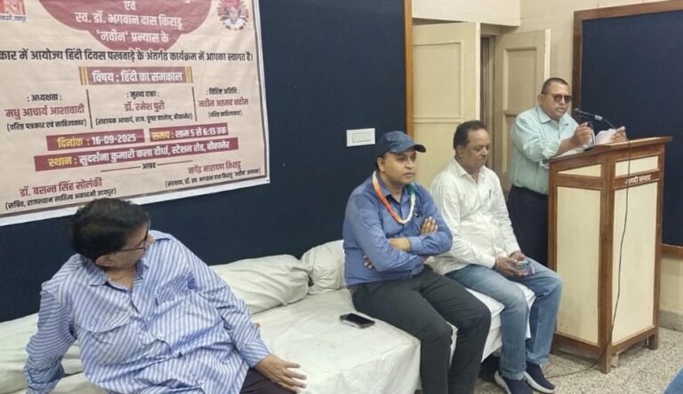 राजस्थान साहित्य अकादमी, उदयपुर व स्व भगवान दास किराड़ू ‘ नवीन ‘ प्रन्यास का संयुक्त आयोजन बीकानेर, निडर इंडिया न्यूज। राजकीय डूंगर महाविद्यालय में सहायक