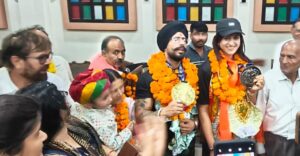 जहां सोढ़ी दंपति का भव्य स्वागत किया गया। पूर्व पार्षद दीपक अरोड़ा के नेतृत्व में इस अवसर पर जबरदस्त आतिशबाजी कर मिठाइयां बांटी गई। डीजे की धुन पर प्रशंसक नाचते गाते हुए पहुंचे। लोगों ने पदक विजेता पीयूष और अमनदीप कौर को फूलों से लाद दिया। इस अवसर पर उनके कोच फिरदौस पटवा का खासतौर पर अभिनंदन किया गया।