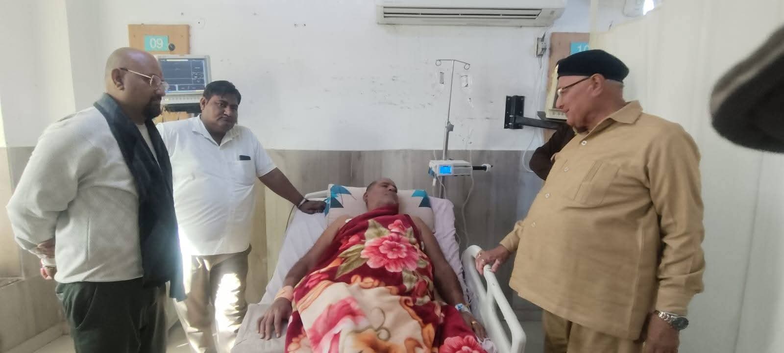 हल्दीराम मूलचंद हार्ट अस्पताल में स्वास्थ्य लाभ ले रहे ख्यातिनाम जयोतिर्विद पंड़ित राजेन्द्र व्यास(ममू महाराज) की कुशलक्षेम पूछने के लिए सोमवार को पूर्व मंत्री डॉ.बीड़ी कल्ला अस्पताल पहुंचे। उन्होंने ममू महाराज के हाल-चाल पूछे और जल्द स्वस्थ्य होने की कामना की। इस दौरान कॉमेडियन मुकेश भी मौजूद रहे। बताया जा रहा है कि ममू महाराज के स्वास्थ्य में सुधार हो रहा है।
