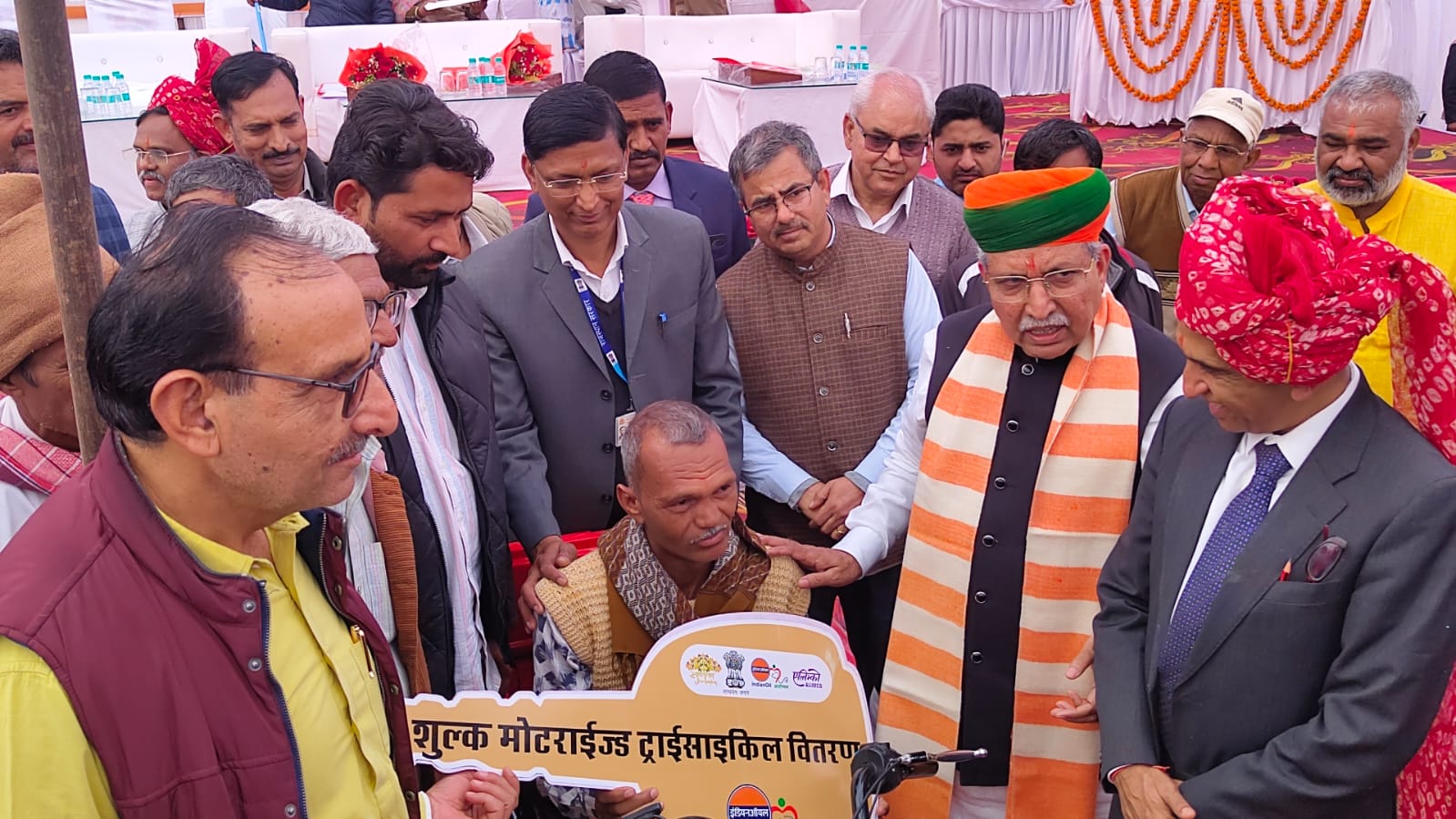 केंद्रीय विधि एवं न्याय मंत्री अर्जुन राम मेघवाल के प्रयासों से शनिवार को राजकीय पॉलिटेक्निक कॉलेज मैदान में सामाजिक अधिकारिता शिविर का आयोजन किया गया। केंद्रीय विधि एवं न्याय मंत्री अर्जुन राम मेघवाल के मुख्य आतिथ्य व आईओसीएल के कार्यकारी निदेशक एवं राज्य प्रमुख मनोज गुप्ता के विशिष्ट आतिथ्य में आयोजित हुए इस शिविर में इंडियन ऑयल कॉर्पोरेशन लिमिटेड के सहयोग से एडिप एवं राष्ट्रीय वयोश्री योजना अंतर्गत कुल 1 करोड़ 53 लाख राशि के 6588 जीवन सहायक उपकरण निशुल्क वितरित कर जिले के कुल 1235 लोगों को लाभान्वित किया गया।