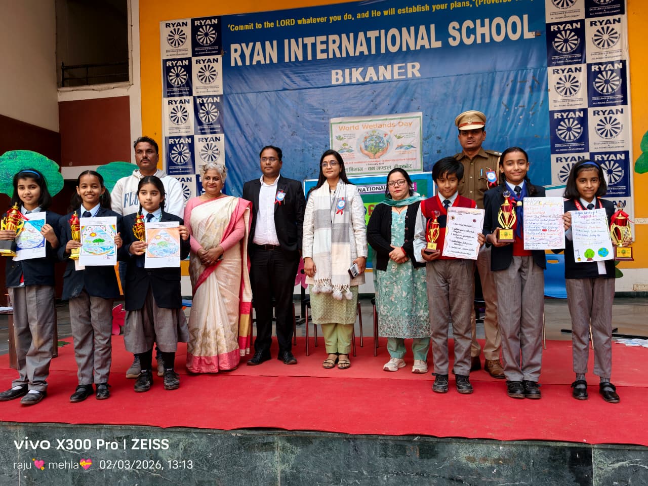 विश्व आर्द्रभूमि दिवस के अवसर पर मंगलवार को पर्यावरण संरक्षण एवं आर्द्रभूमियों के महत्त्व के प्रति विद्यार्थियों में जागरूकता बढ़ाने के उद्देश्य से वन विभाग बीकानेर द्वारा रयान इंटरनेशनल स्कूल में क्विज एवं चित्रकला प्रतियोगिताओं का आयोजन किया गया।