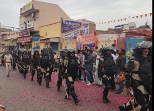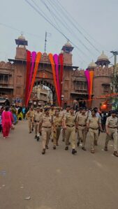 धर्मयात्रा की तैयारियों के तहत शहर में सुरक्षा व्यवस्था को लेकर पुलिस प्रशासन भी पूरी तरह सतर्क नजर आया। विभिन्न क्षेत्रों में पुलिस द्वारा फ्लैग मार्च निकाला गया, जिससे आमजन में सुरक्षा का विश्वास बढ़ा। इस दौरान कार्यक्रम संयोजक उमेश व्यास, समिति के महामंत्री नवीन एवं अन्य कार्यकर्ताओं द्वारा पुलिस दल पर पुष्पवर्षा कर उनका स्वागत किया गया और प्रशासन के सहयोग की सराहना की गई।