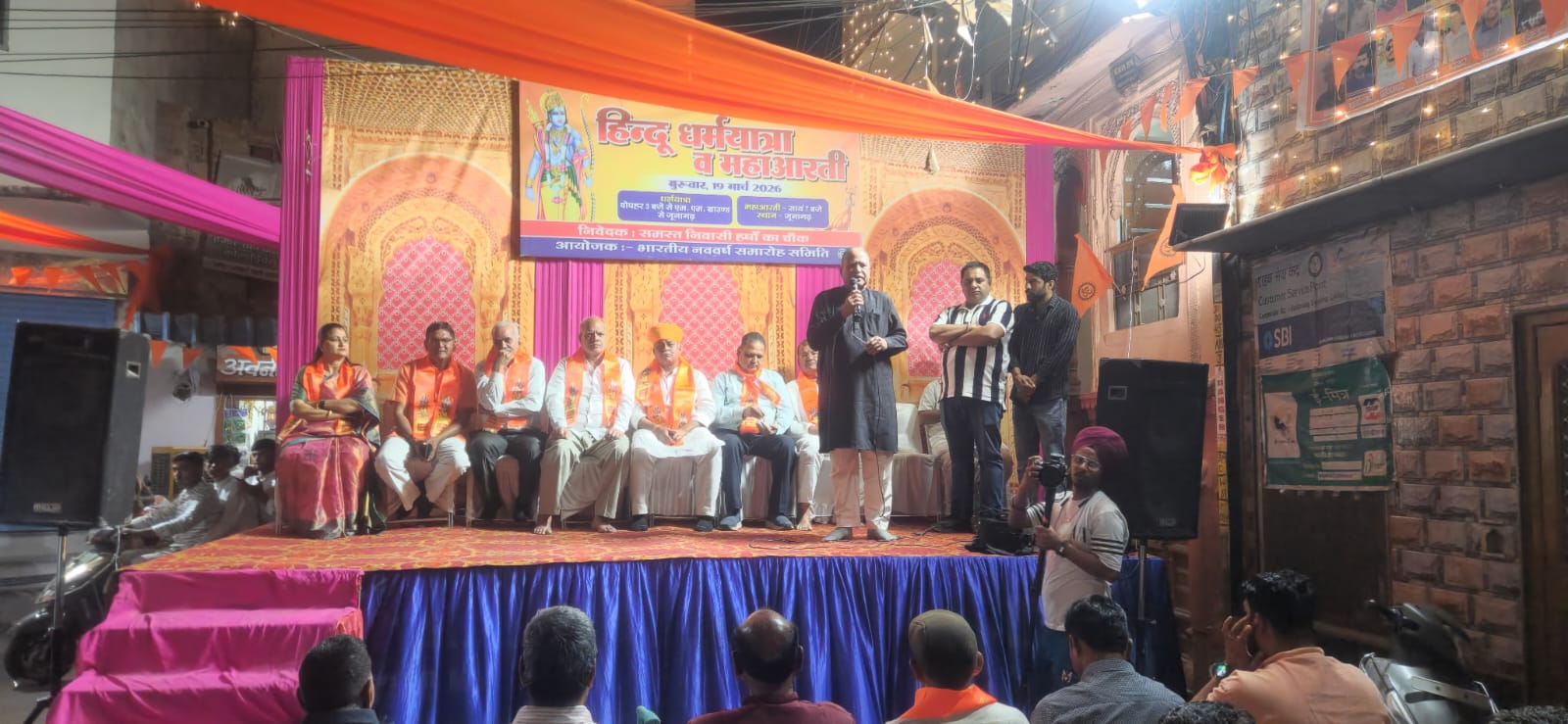 वहीं चूना भट्टा बस्ती में नववर्ष समारोह समिति के महामंत्री भंवर पुरोहित एवं सह-संयोजक जगदीश सोलंकी के नेतृत्व में सामाजिक समरसता के तहत एक संगोष्ठी आयोजित की गई। इस संगोष्ठी में क्षेत्रवासियों के साथ मातृशक्ति की भी उल्लेखनीय भागीदारी रही। कार्यक्रम के दौरान युवाओं को भगवा टी-शर्ट वितरित की गई और सभी ने एकजुट होकर धर्मयात्रा एवं महाआरती में बढ़-चढ़कर भाग लेने का संकल्प लिया। इस अवसर पर क्षेत्र के अनेक गणमान्य नागरिक एवं मोहल्लेवासी उपस्थित रहे, जिससे कार्यक्रम का महत्व और अधिक बढ़ गया।