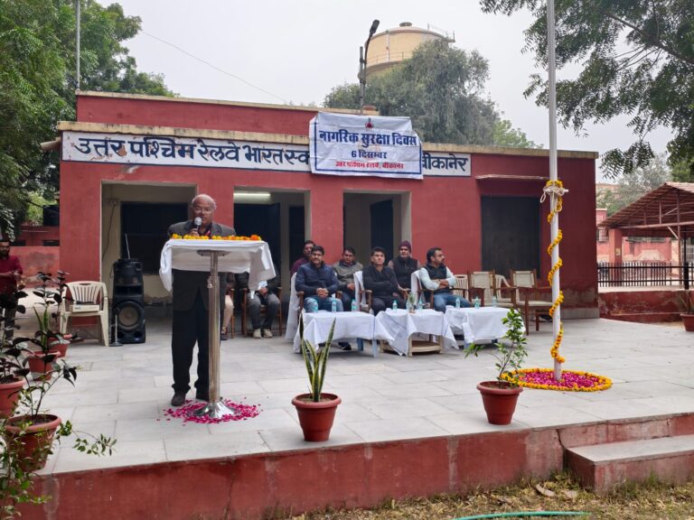 बीकानेर, निडर इंडिया न्यूज। उत्तर पश्चिम रेलवे बीकानेर मंडल की ओर से नागरिक सुरक्षा दिवस कार्यक्रम आयोजित किया गया। इसमें संरक्षा संगठन ने विपरित परिस्थितियों