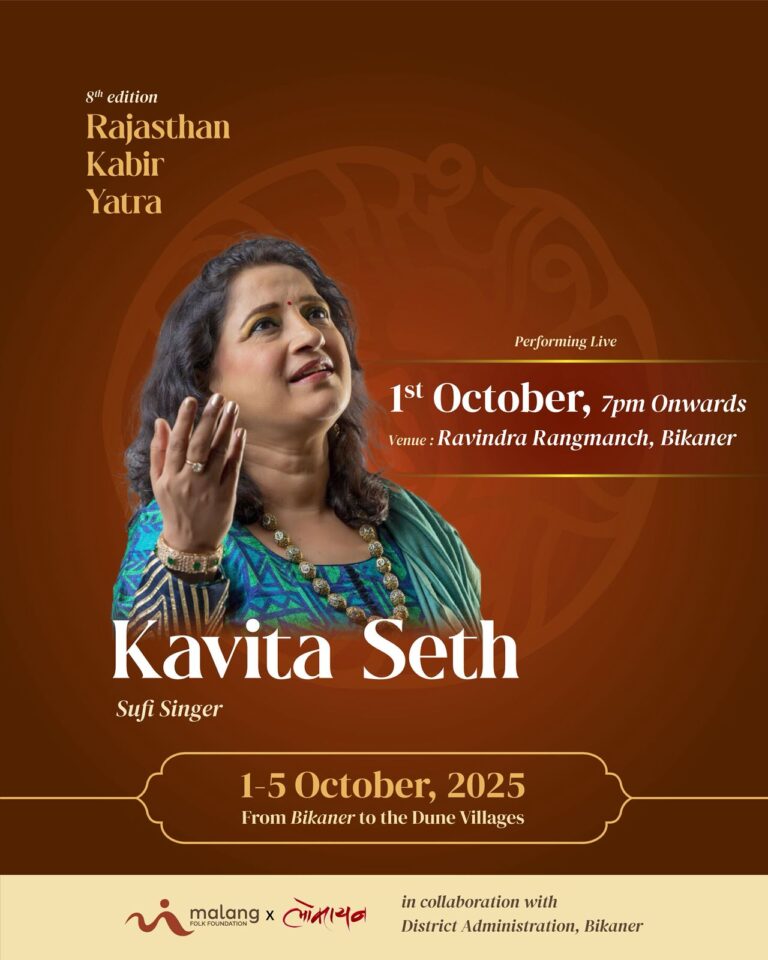 पहले दिन देश की ख्यातिनाम गायिका कविता सेठ की होगी विशेष प्रस्तुति, पांच अक्टूबर तक चलेगी बीकानेर, निडर इंडिया न्यूज। मलंग फोक फाउंडेशन, लोकायन संस्थान,